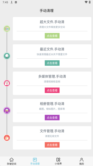 3、底部的手动清理板块,用户可以手动点击查看最近文件、多媒体等,并进行清理。