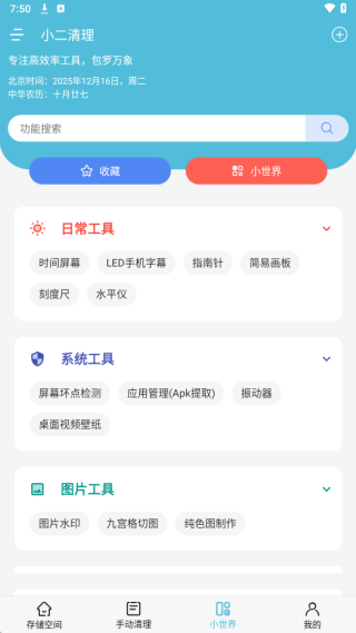 4、点击底部的小世界,用户可以点击小世界查看到各种实用小工具。