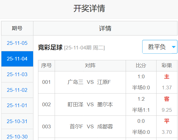3、点击进入赛果详情页,这里可以查看不同时期的赛果内容。