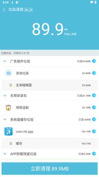 3、清理效果明显,能快速准确地清理残留垃圾,提升手机性能,内存清理很彻底。