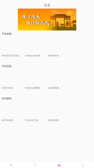 3、进入生活板块,则有汽车美容、汽车用品、车内装饰等模块,随时用。